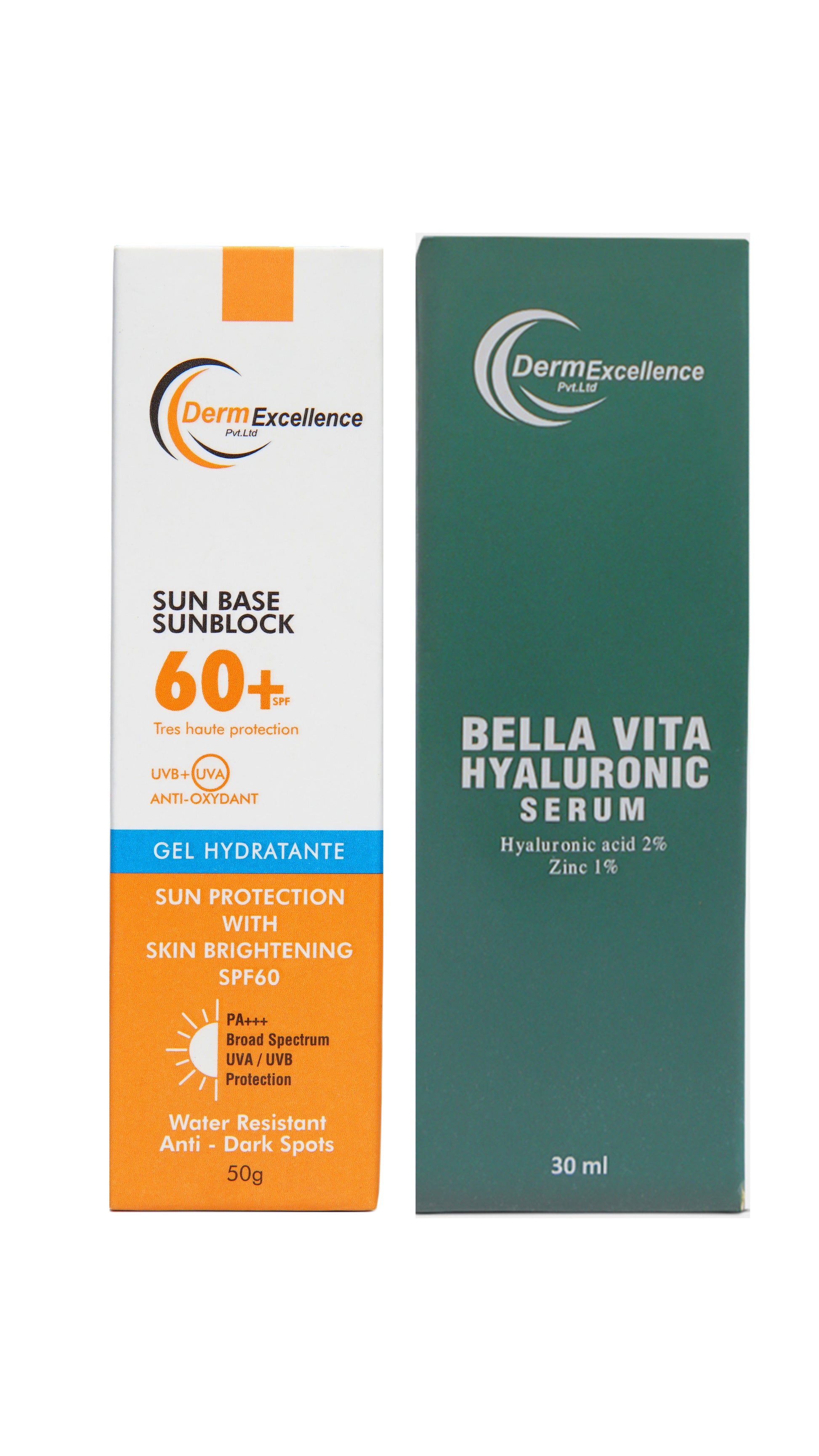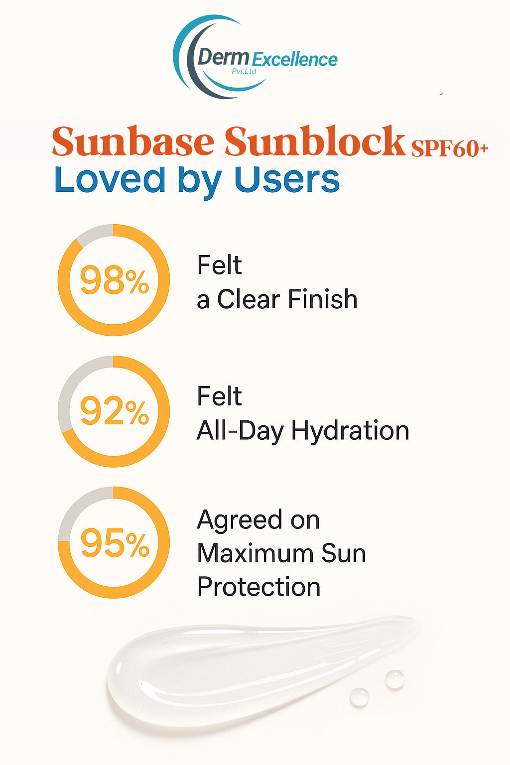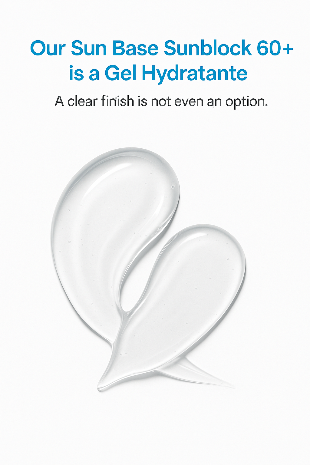 Tired of sunblocks that feel heavy, greasy, and leave a ghostly white cast? Derm Excellence introduces the revolutionary Sun Base Sunblock 60+ Gel Hydratante, a powerful formula that provides maximum sun protection without compromise. Our advanced gel formula absorbs instantly, leaving your skin feeling fresh, hydrated, and completely clear, so you can enjoy the sun without the worry.