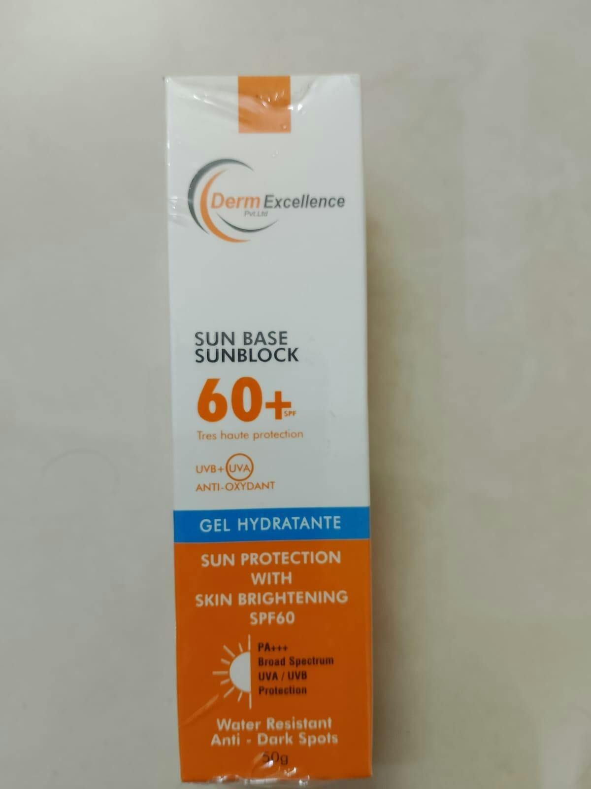 Tired of sunblocks that feel heavy, greasy, and leave a ghostly white cast? Derm Excellence introduces the revolutionary Sun Base Sunblock 60+ Gel Hydratante, a powerful formula that provides maximum sun protection without compromise. Our advanced gel formula absorbs instantly, leaving your skin feeling fresh, hydrated, and completely clear, so you can enjoy the sun without the worry.